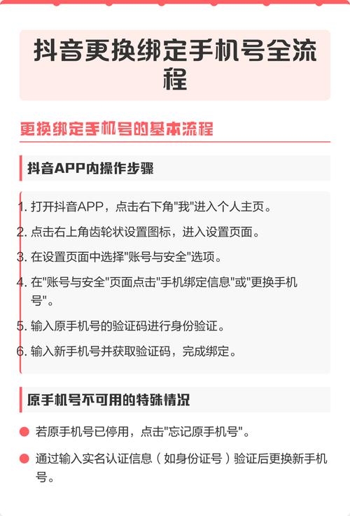 抖音怎么解除手机绑定 你能正常登录抖音账号(知道密码):这是最简单的情况,直接在App内设置即可。 你无法登录抖音账号(忘记密码、手机号已丢失/停机等):这种情况需要通过申诉流程来处理,稍微复杂一些。 下面我将为你详细讲解这两种情况的具体操作步骤。(图片来源网络,侵删) 能正常登录抖音账号(最简单) 如果你能成功登录抖音...