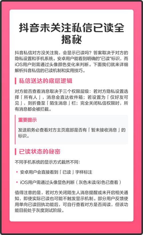 抖音不关注也能私信?这功能是默认开启还是需要手动设置?未关注状态下私信会被对方看到吗? 这是一个非常常见的问题,答案是:不可以,除非是特定情况。(图片来源网络,侵删) 抖音的默认规则是:双方必须互相关注,才能互相发送私信。 下面我为你详细解释一下,以及有哪些例外情况和解决方案。 默认规则:需要互相关注 如果你去尝试给一个没有关注你的人发私信,通常会遇到以下情况: 按钮是灰色的:私信按钮...