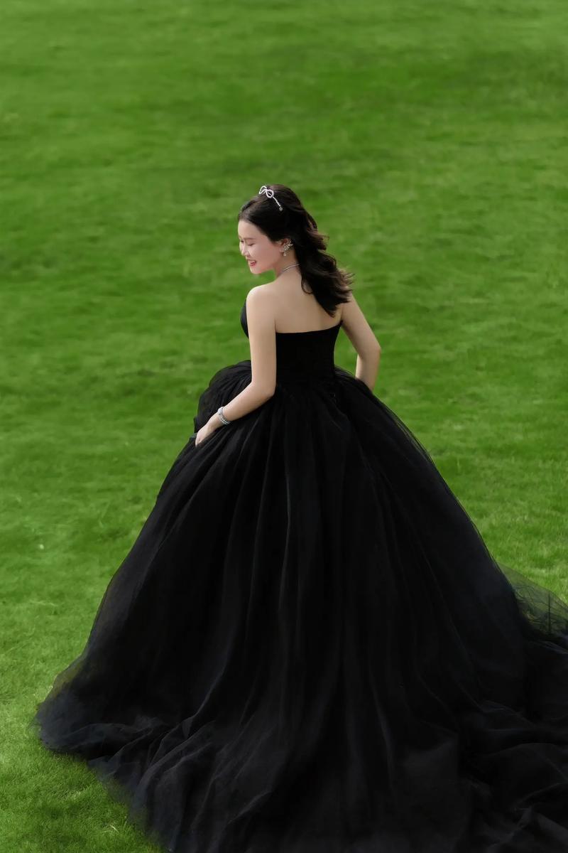 - 服装:黑婚纱不只有一种款式,可以选择A字、鱼尾、吊带、抹胸等不同款式,甚至可以自己DIY或改造一件有设计感的黑色长裙。