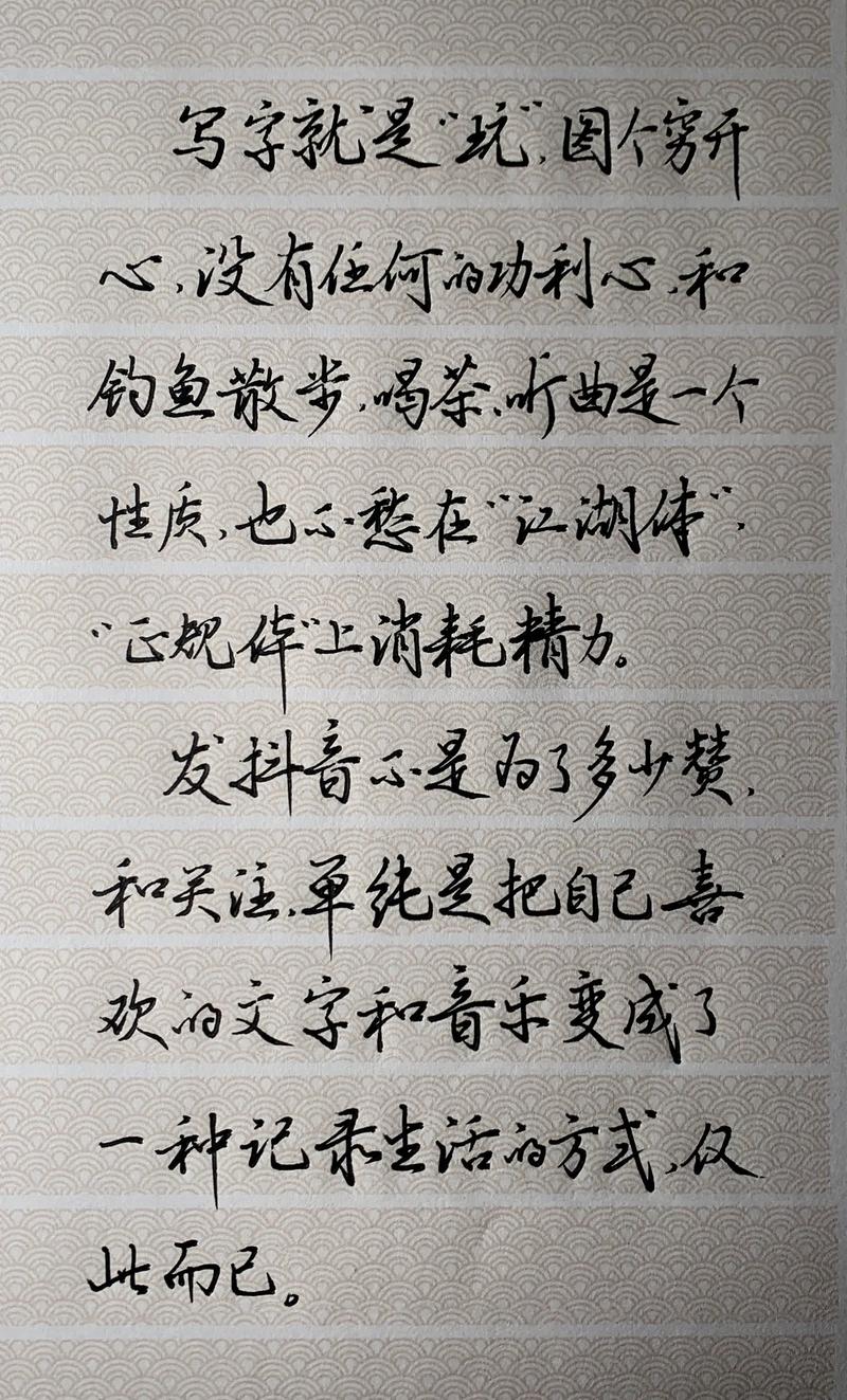 - :他经常强调写字可以“静心”、“解压”,在快节奏的现代社会,这种“精神按摩”的内容极具吸引力。