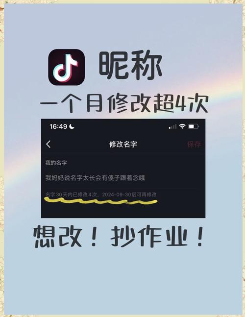 - 修改限制: 抖音对昵称的修改频率有限制,通常情况下,30天内只能修改一次,请谨慎修改,想好再用。