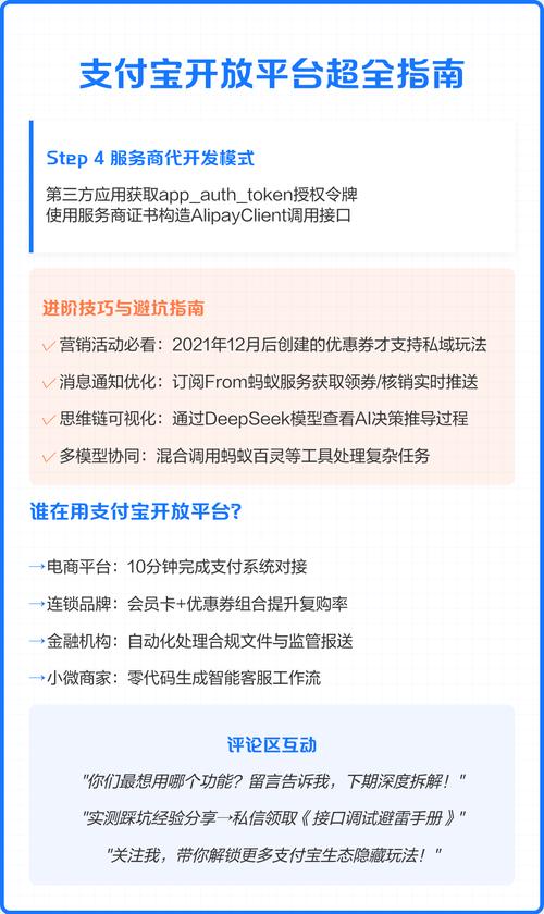 | 商家 | 在支付宝上进行内容营销和销售 | 可以 | 运营“支付宝生活号”,或在支付宝内开通小程序店铺。 |