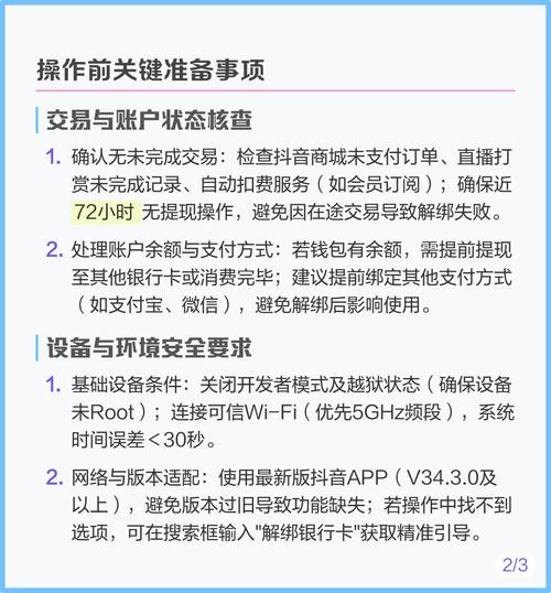 - 安全第一:解绑银行卡前,请确保该卡内没有未完成的交易,以免造成不必要的麻烦。
