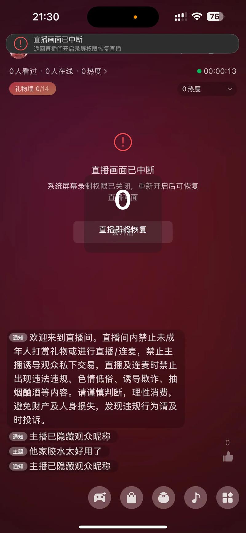 主播网络或设备问题