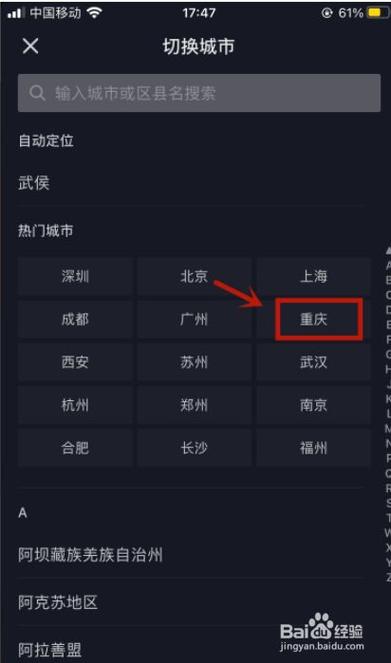 - 搜索城市:点击后,会弹出搜索框,在这里直接输入你想定位的城市名称,北京”、“上海”、“成都”。