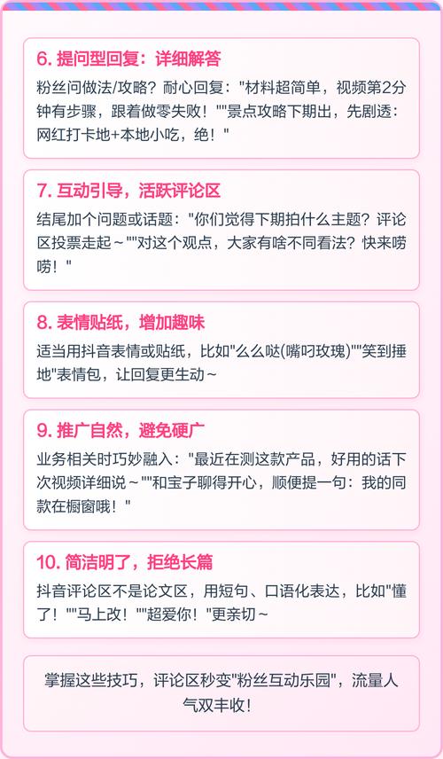 - 激活社群,增强粘性:让评论区成为你的“粉丝后花园”,让老粉丝有归属感,愿意在这里聊天、分享,形成良性循环。