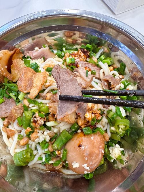 咸香浓郁、花生灵魂、配料豪华 这碗汤粉可能长相最朴素,但味道绝对惊艳!汤头是用多种香料熬制的,咸香中带着一丝回甘,灵魂在于铺满顶部的花生碎,每一口都能吃到香脆的花生,口感层次爆炸! Tips: 搅拌均匀,让花生碎和汤底完美融合,味道会提升一个level!