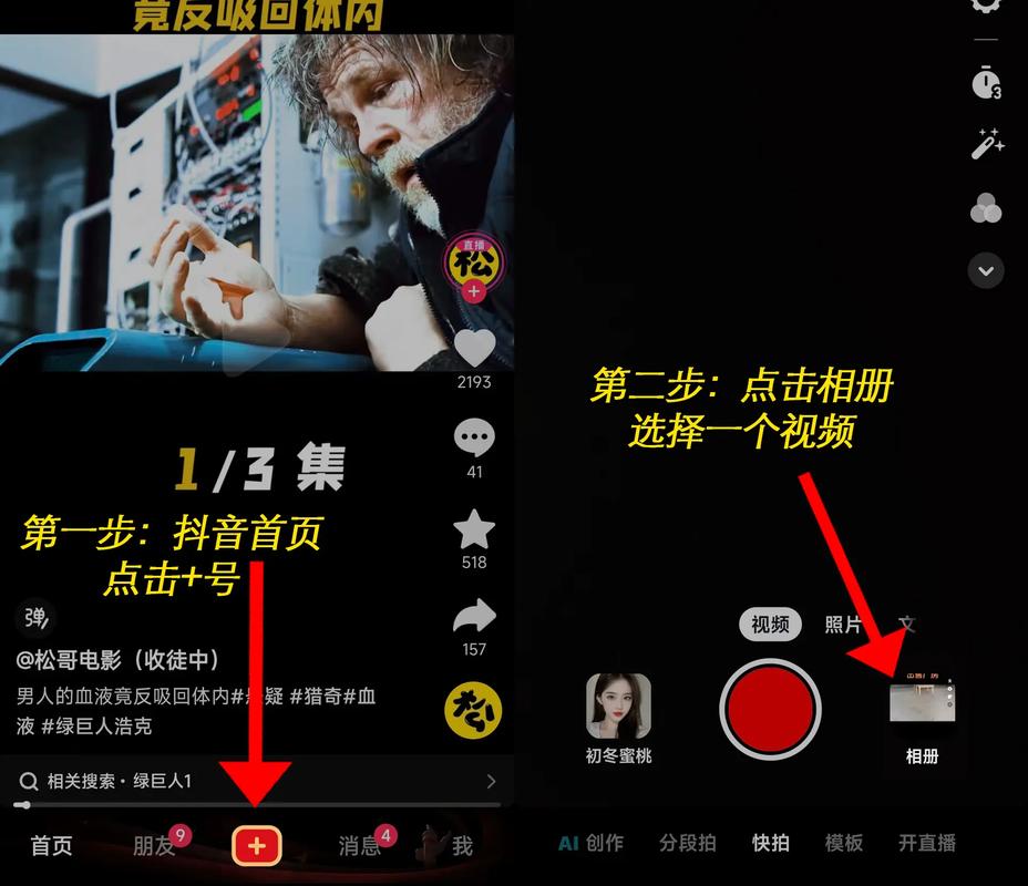 - 打开抖音App,点击屏幕下方的 号,开始拍摄或上传一个视频。