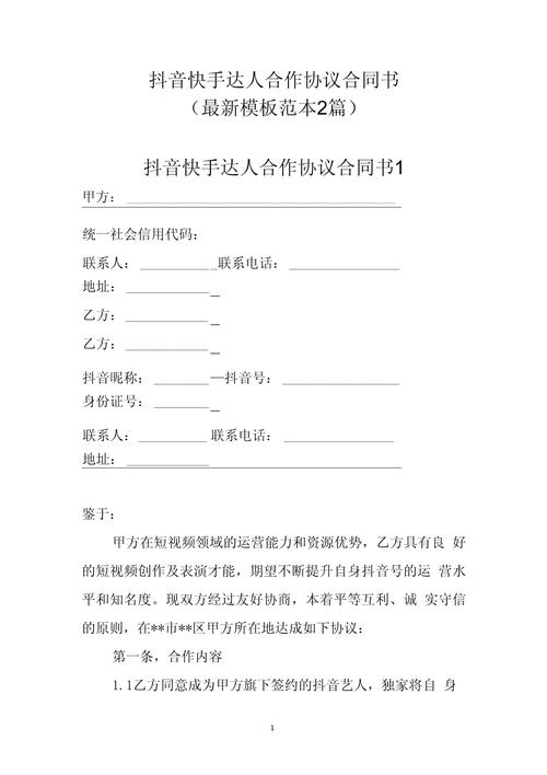 快手平台或其合作的MCN机构为了吸引和留住有潜力的主播,通常会提供一份包含以下部分的签约合同: