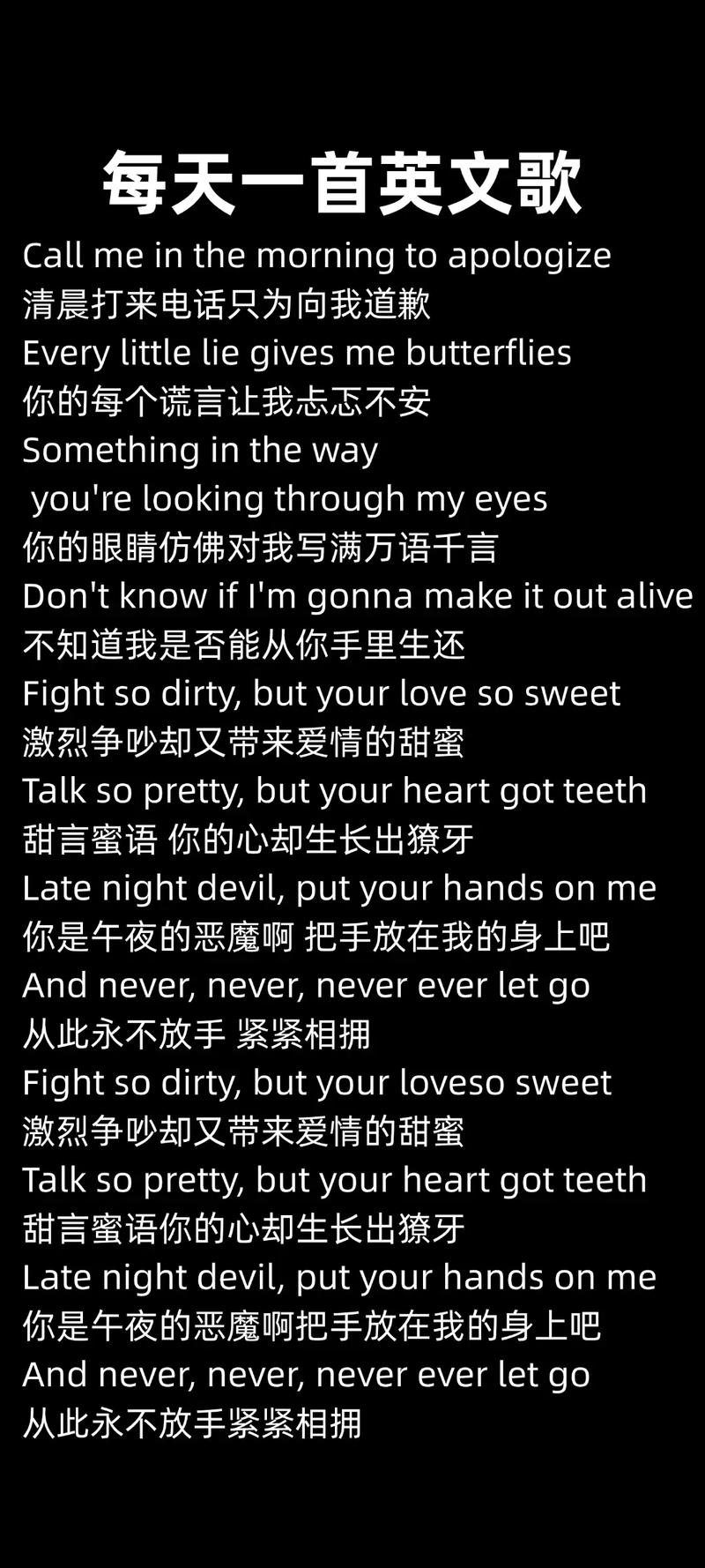 "I can buy myself flowers, write my name in the sand..." (我可以自己买花,在沙滩上写下我的名字...) "I can love me better than you can..." (我可以比我更好地爱自己...)