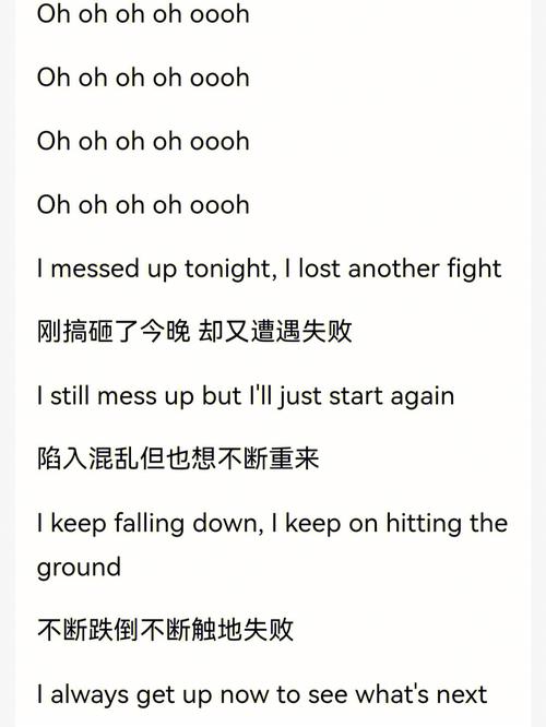 "Don't be afraid to be afraid, I'm not afraid to be afraid" (别害怕去害怕,我并不害怕去害怕) "Levitating, levitating, levitating..." (漂浮着,漂浮着,漂浮着...)