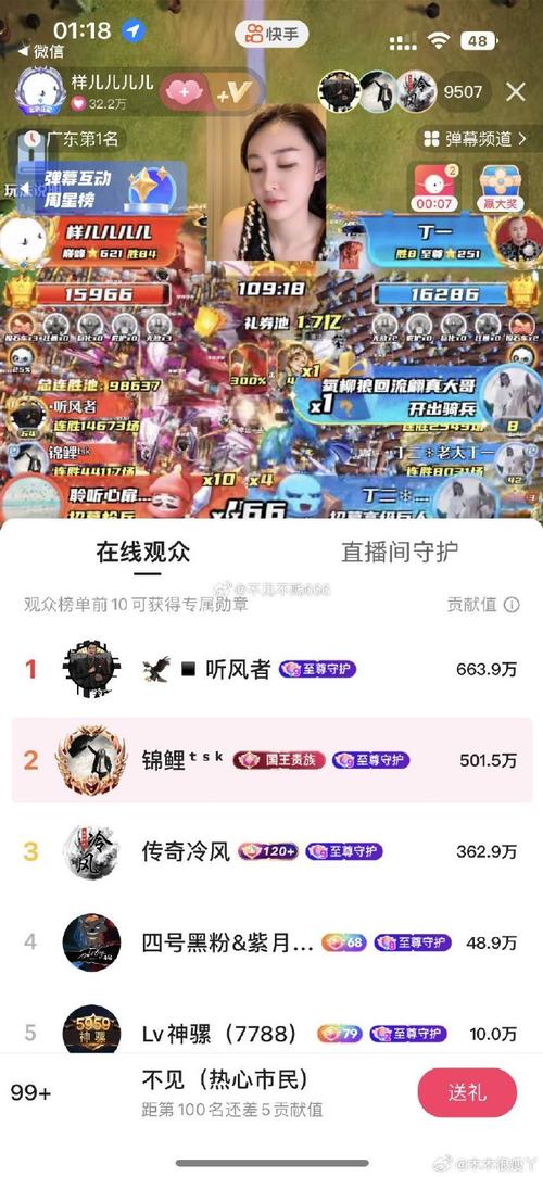 - 榜一、榜二、榜三:通常会特别突出显示前三名的用户,他们的头像、ID、送出的礼物总价值(通常是“金豆”或人民币价值)都会清晰列出。