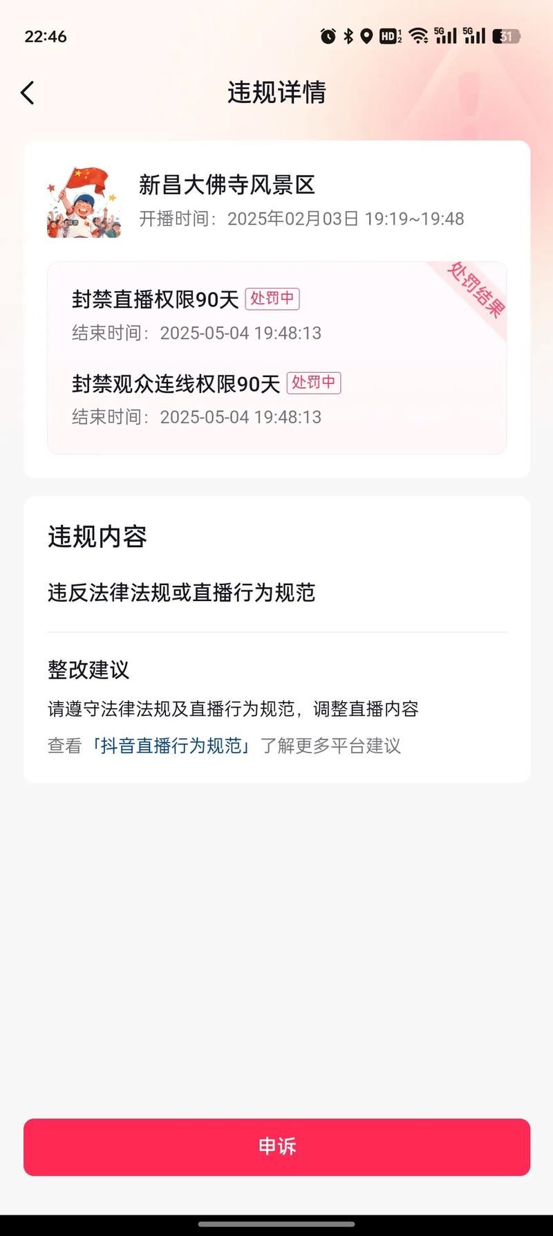 - 如何处理: 基本无法解封。 抖音官方对于永久封禁的申诉审核非常严格,几乎不可能成功,一旦被永久封禁,基本可以认为这个账号“没了”。