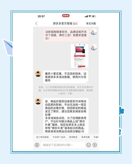 - 附上证据:发送你准备好的购买凭证和降价证据截图。