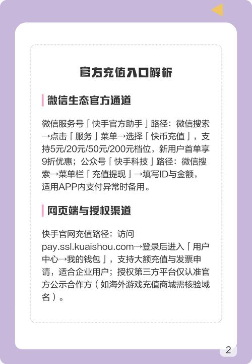 - 支付安全:请确保在官方渠道(快手App或微信小程序)进行充值,不要点击来路不明的链接,以防被骗,输入支付密码时请确认环境安全。