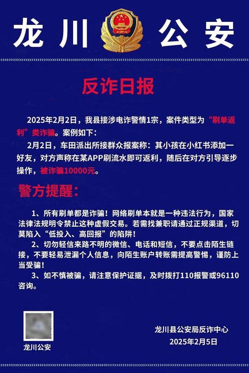 - 刷单返利诈骗升级版: 这是最常见的一种,骗子以“高薪兼职,帮商家刷单提销量”为名,诱导你先用自己的钱(或通过信贷平台的钱)购买商品,承诺“连本带利返还”,当你用“来分期”支付后,骗子会以“任务未完成”、“系统卡单”等理由,拒绝返款,并诱导你继续刷单,直到你意识到被骗,此时贷款已经产生。