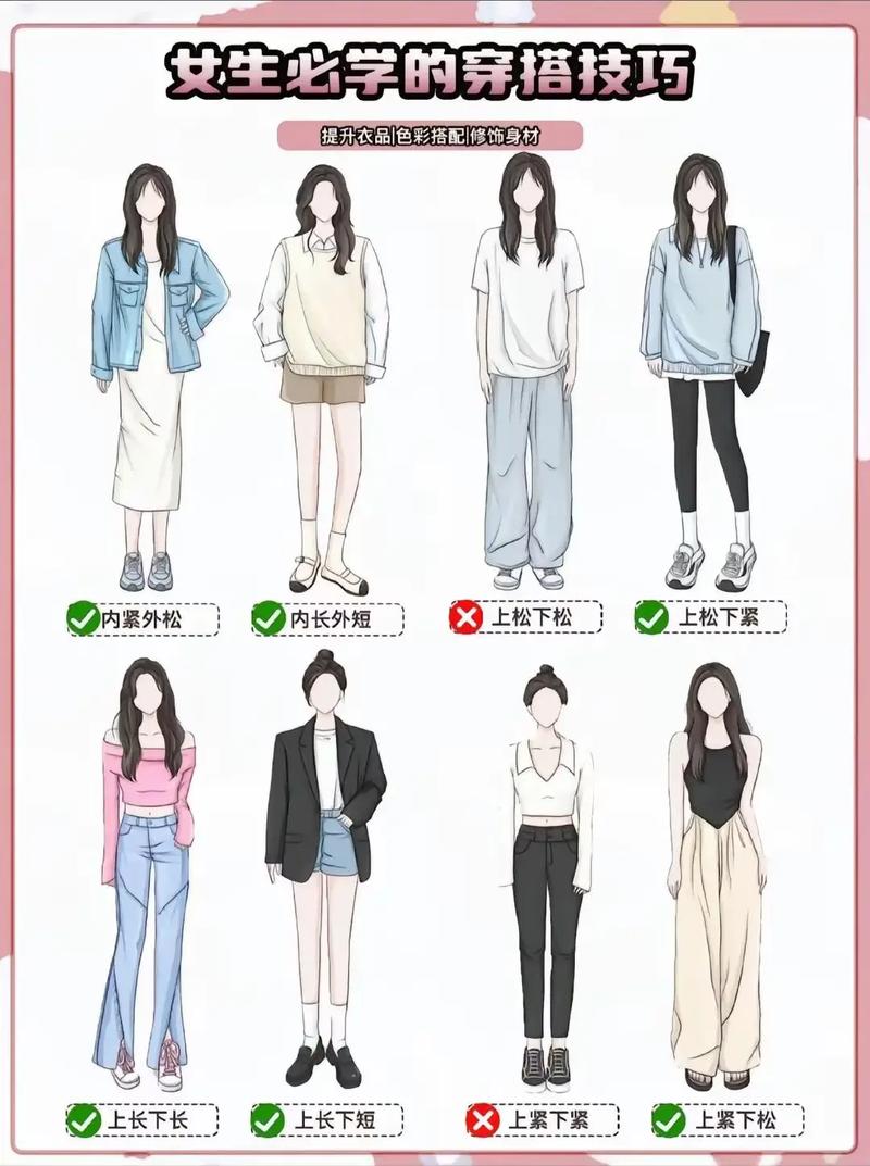 - 搭配思路:解释为什么这么搭,上短下长显高”、“利用同色系延伸腿长”。