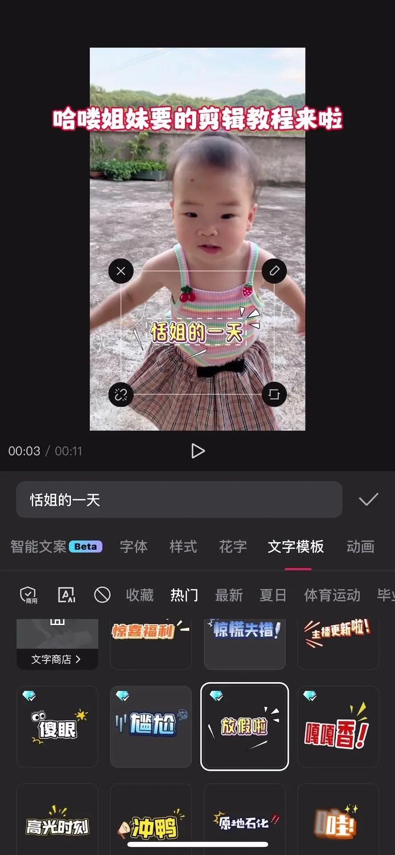 - 增加趣味性:使用花字、贴纸等元素增加视频的活泼感。
