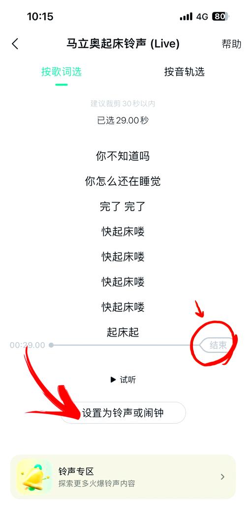 - 你会看到音频波形图,拖动两端的滑块,选择你想要循环播放的那一段,你特别喜欢副歌部分,就可以只剪辑副歌的10-15秒。