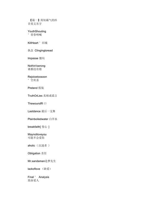 外语/小众词汇:使用一些有特殊含义的外语单词或小众词汇,显得独特。