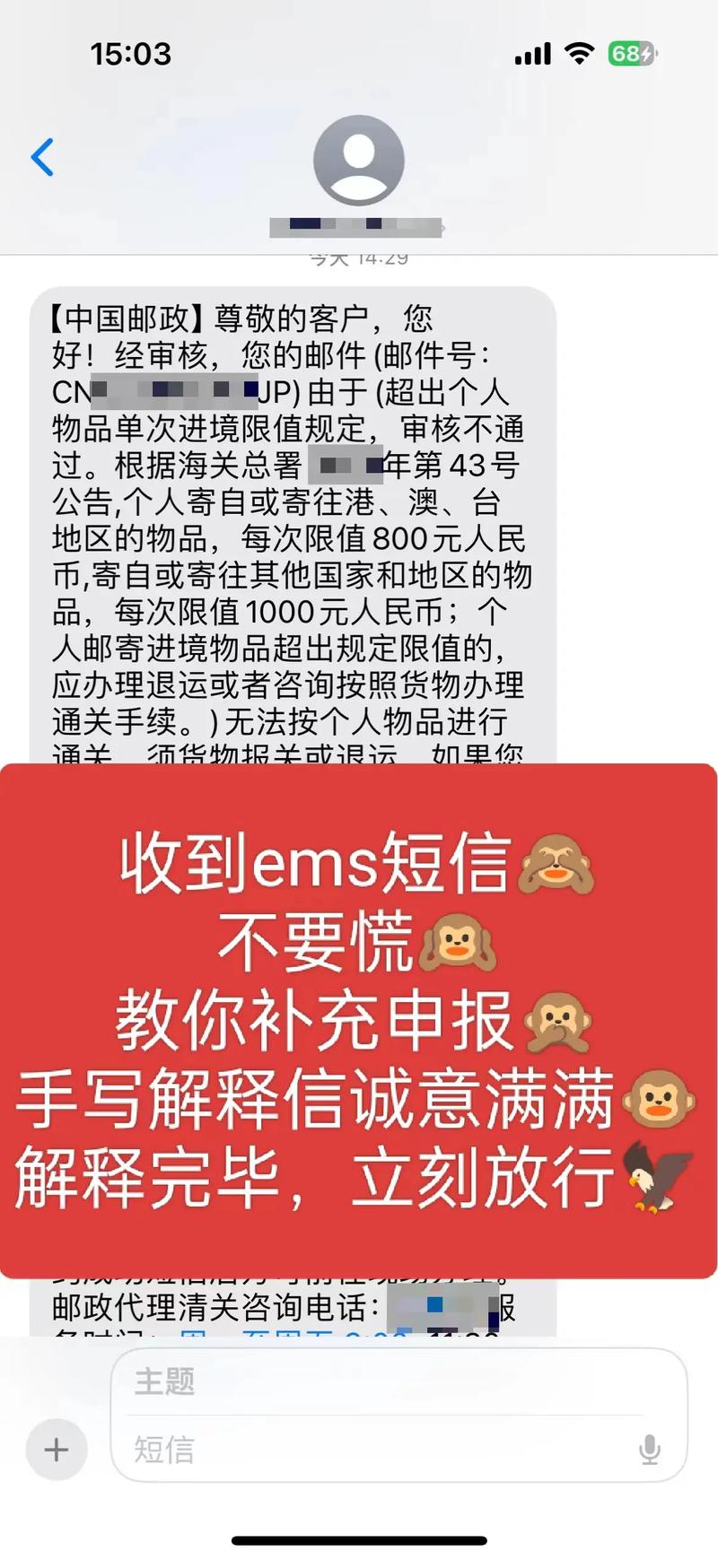 - 保持电话畅通: 确保收件人电话畅通,方便海关或EMS联系你。