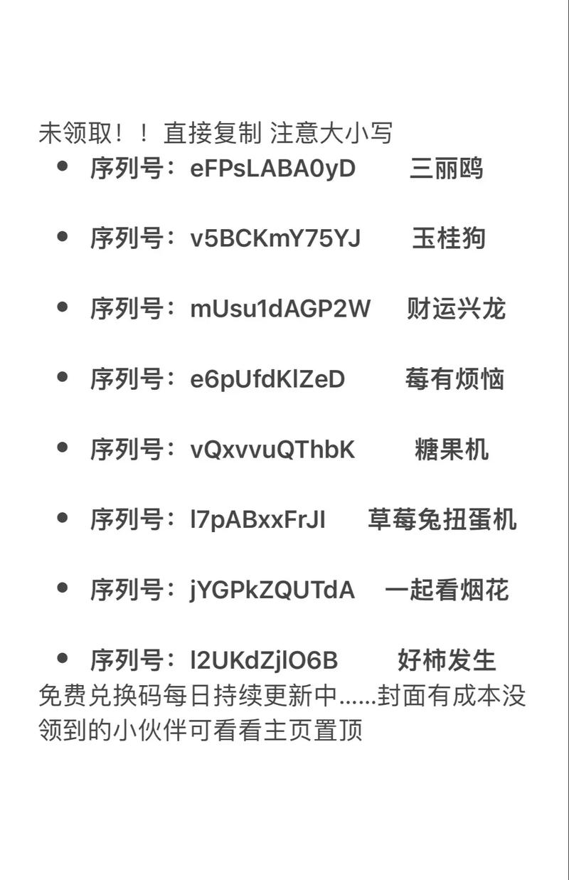 - 及时使用:即使是新发放的兑换码,通常也有时效性,看到后要尽快使用。