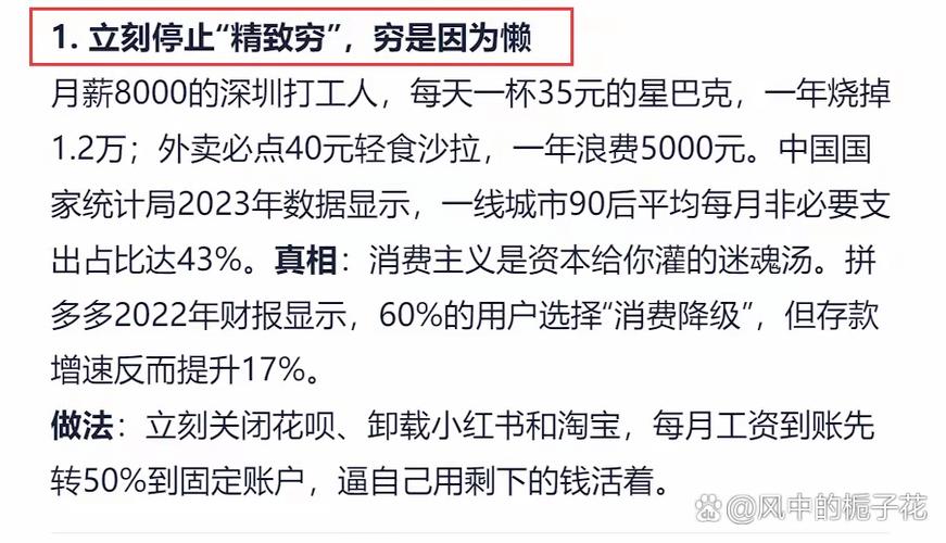 - “精致穷”的表演者:这是最大的一类群体,他们可能收入普通,但为了维持某种生活方式或人设,会“咬牙”买一两件奢侈品,或者贷款买豪车,他们展示的是一种“看起来很富”的生活状态,背后可能背负着不小的经济压力。