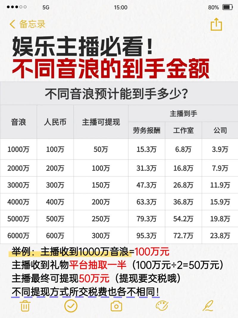 - 主播收益:主播获得的打赏(音浪)是其直播收入的主要来源之一。