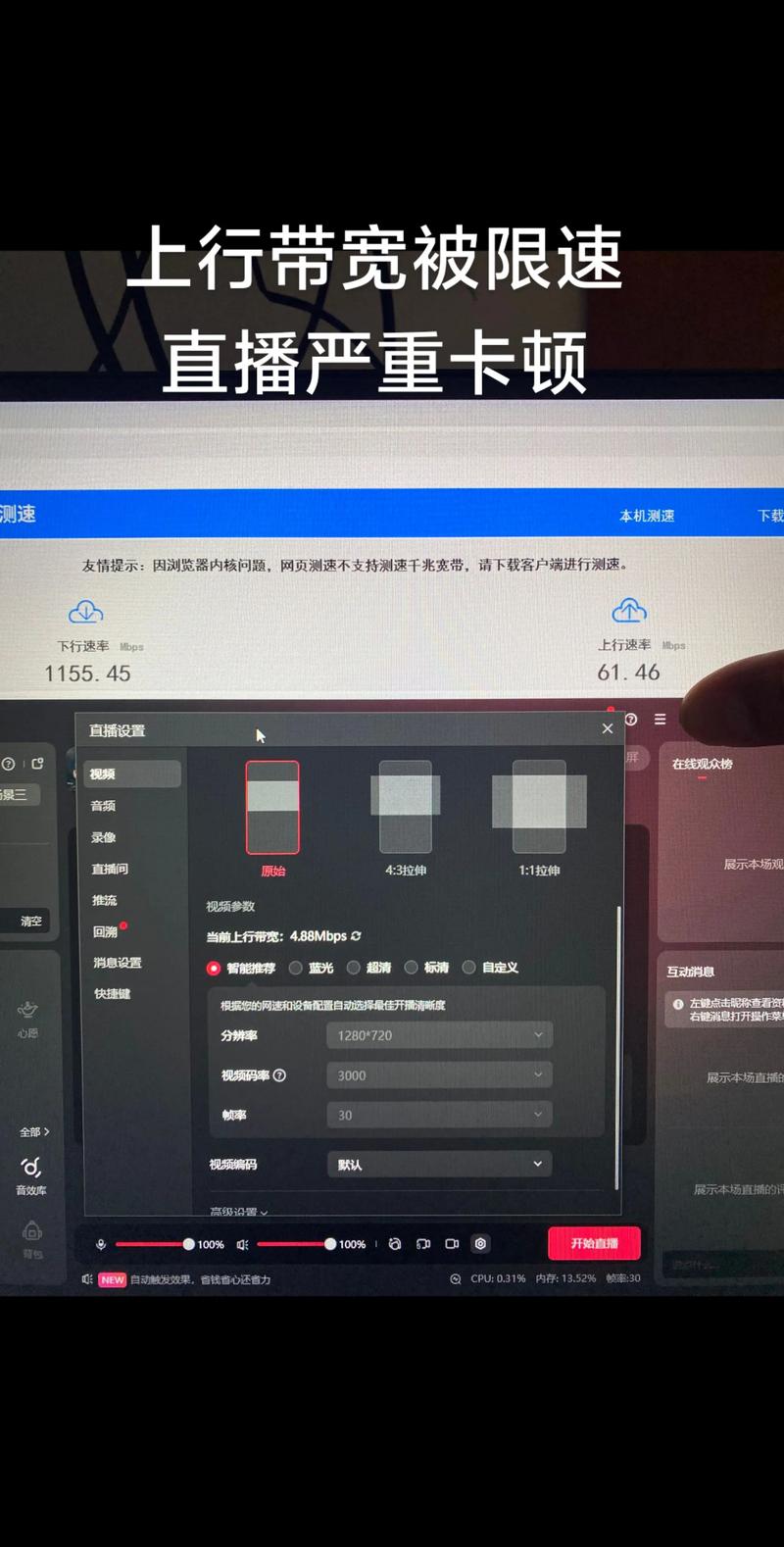 - CPU和内存占用: 在直播时,按