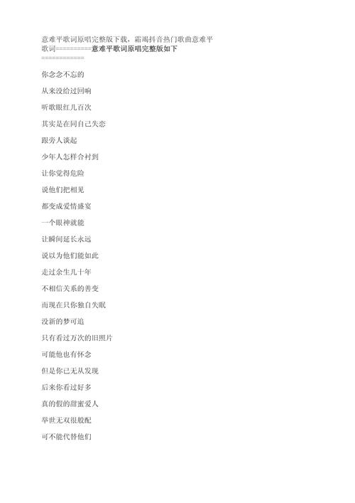 - 火爆原因:这首歌其实在翻唱时代就很火,但抖音让它彻底“破圈”,前奏一响,就充满了故事感,无论是旅行、回忆、还是告别,都能用这首歌,歌词“我曾将青春翻成她”深入人心。