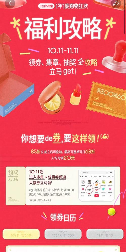 - 活动形式:虽然小红书不是电商平台,但它是“大促种草”的核心阵地,平台会与大量品牌合作,推出“小红书双十一好物节”、“618必买清单”等活动,内容形式以“清单”、“攻略”、“测评”为主。