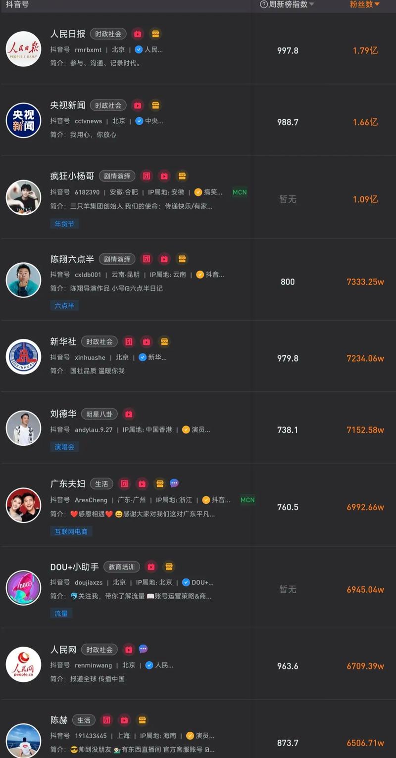 抖音红人粉丝排行榜背后,流量密码与真实影响力究竟如何平衡?
