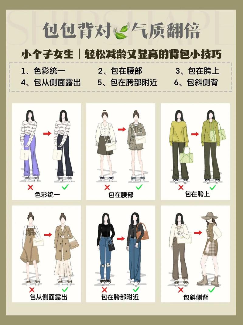 - 配点睛: 配饰起到了什么作用?(项链提升精致感,腰带优化身材比例,包包增加风格感)
