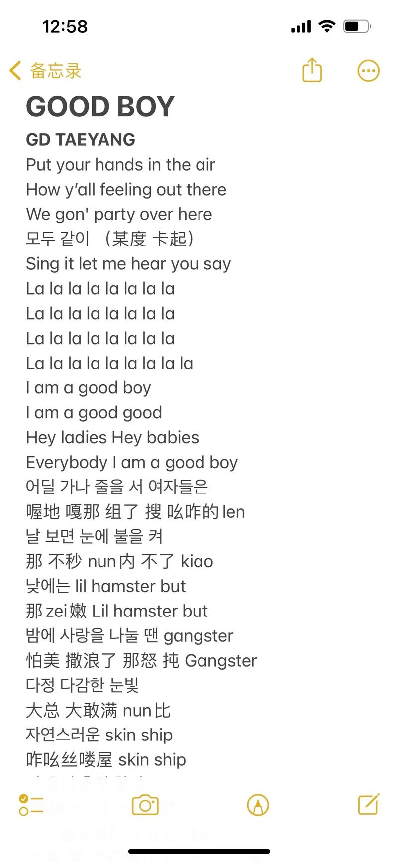 (音乐起,强烈的鼓点) Boy boy boy boy Boy boy boy boy ... (歌词大意围绕着“别惹我”、“看不上你”等主题展开)