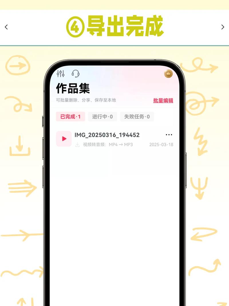 - 手机App:在应用商店搜索“视频转音频”、“MP4转MP3”等工具。