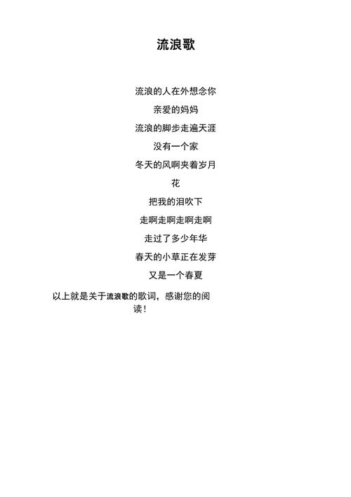 流浪 流浪 流浪 为了心中的梦想 我独自一人走在那街上 流浪 流浪 流浪 为了那远方的爹娘 我承受了太多的心伤