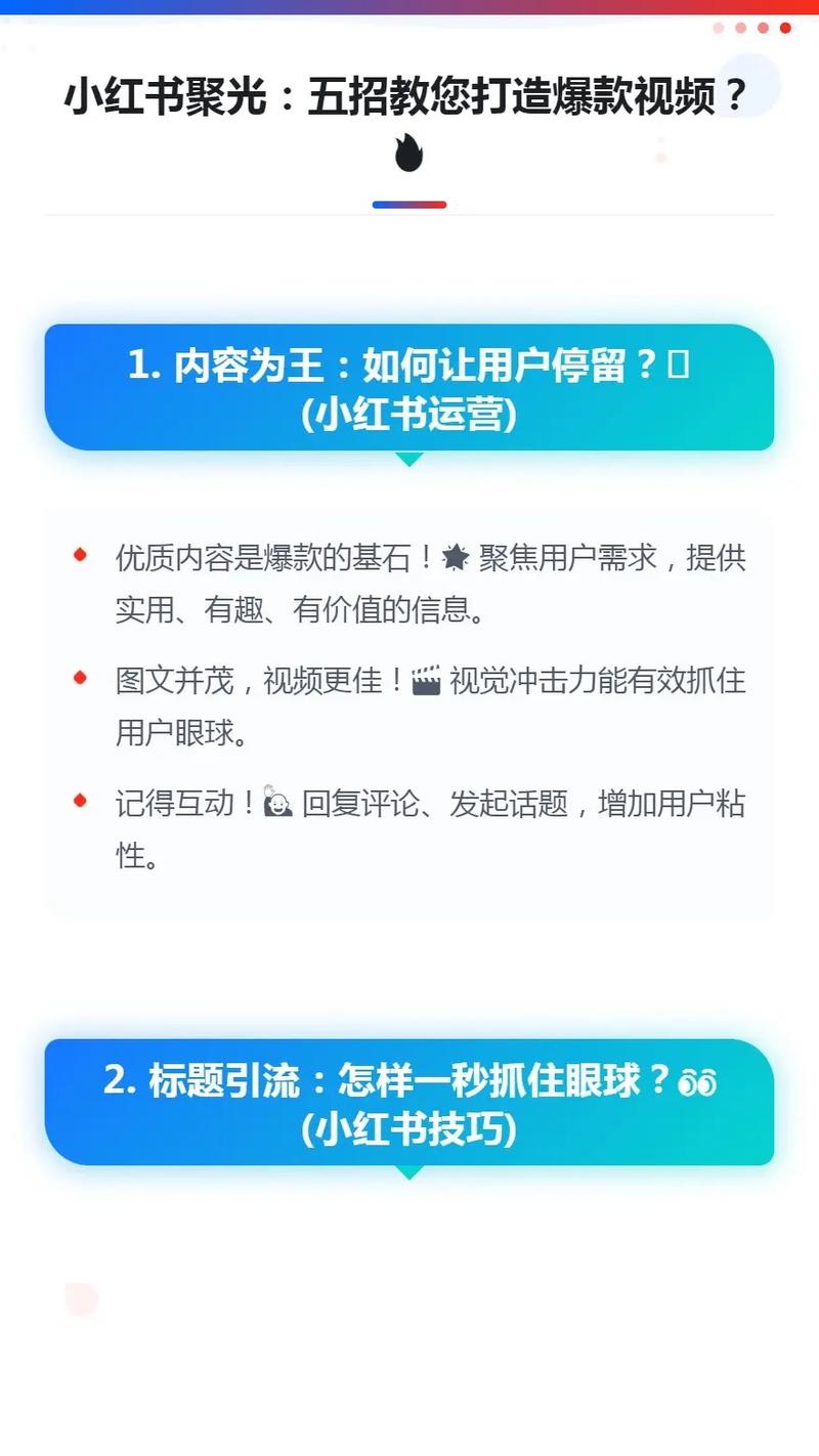 价值为王:用户刷小红书是为了“解决问题”或“获得启发”,你的视频必须提供某种价值,可以是: