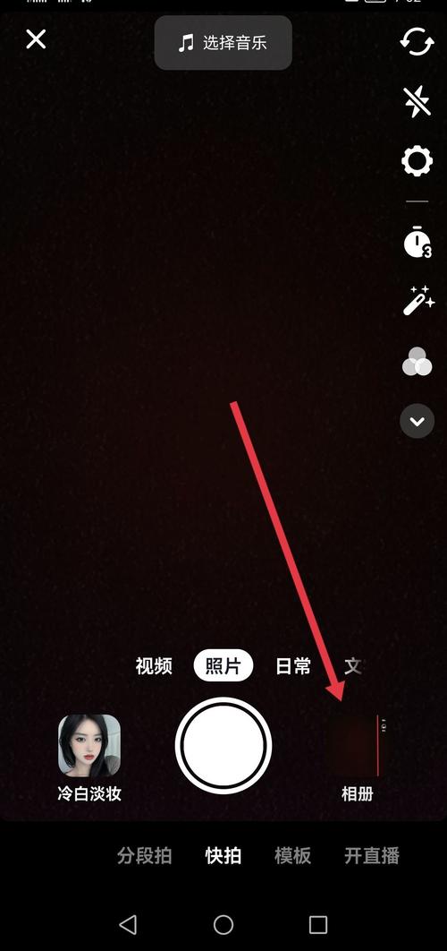 - 这会跳转到拍摄页面,你就可以用这个版本的音乐来拍自己的视频了。