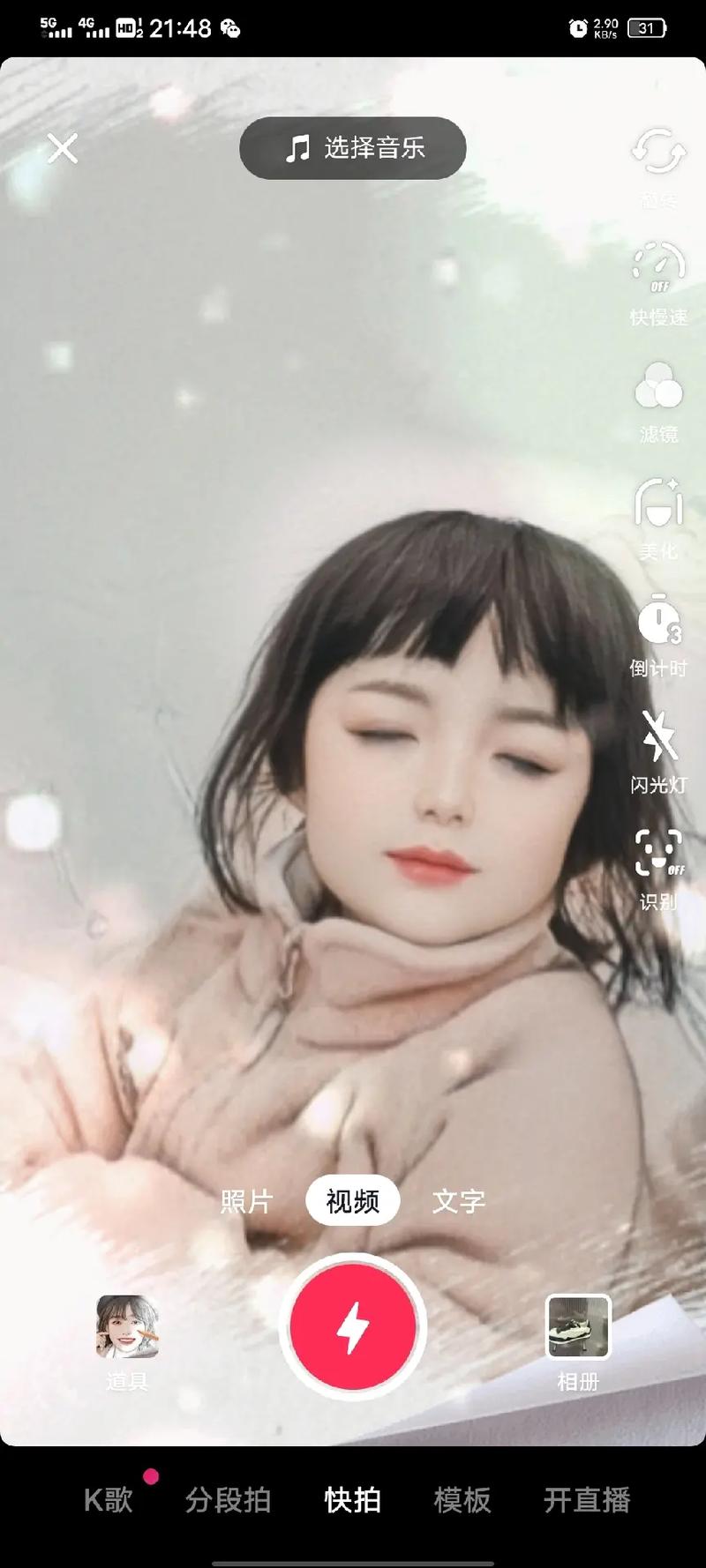 - 自动设置时长:在这种情况下,贴纸的时长和拍摄模式(通常是“合拍”或“使用模板”)是活动预设好的,你无法手动修改,挑战可能要求你对着贴纸拍摄3秒钟的视频。