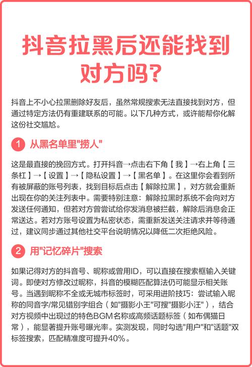 - 无法明确判断是否被拉黑:抖音没有像微信那样明确的“你已被拉黑”的提示,对方收到的所有提示都是系统性的(如“发送失败”、“用户不存在”),这和对方删除你、设置隐私权限、或者你直接注销账号的效果非常相似。