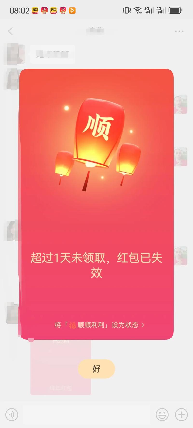 - 解决方法:看到红包提示后,尽快点击领取,不要拖延。